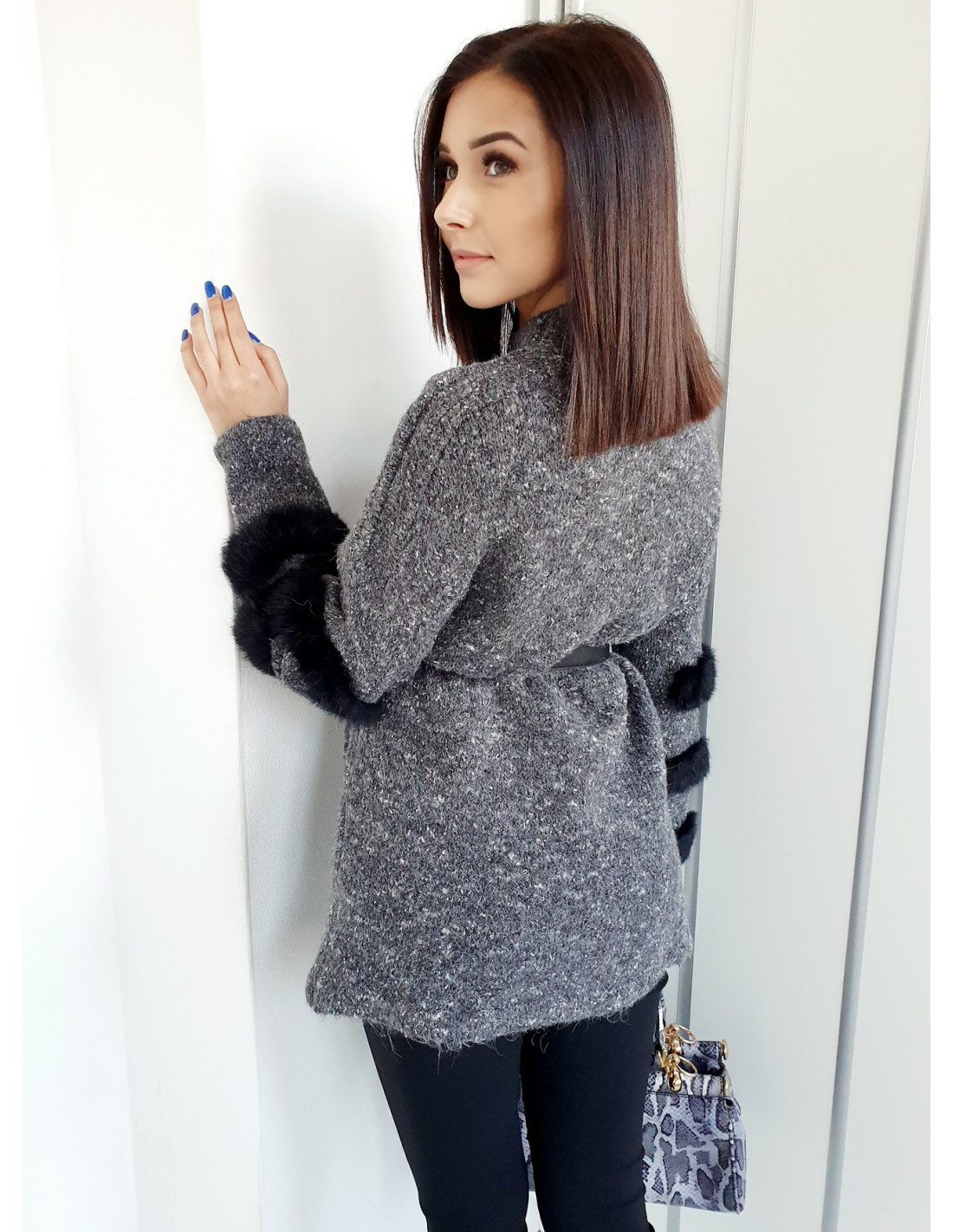 Na rękawach naturalne futerko.