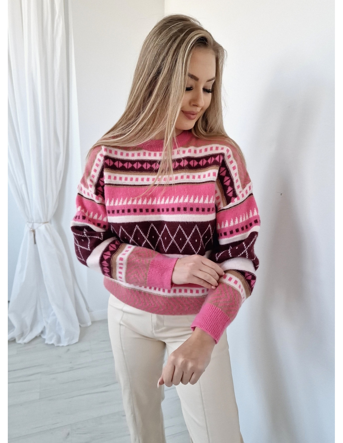 Kategorie Wiskozowy sweter 3378 czekoladowy 3378 marrone Materiał stanowi: 40% wiskoza, 20% wełna, 40% poliester Zobacz