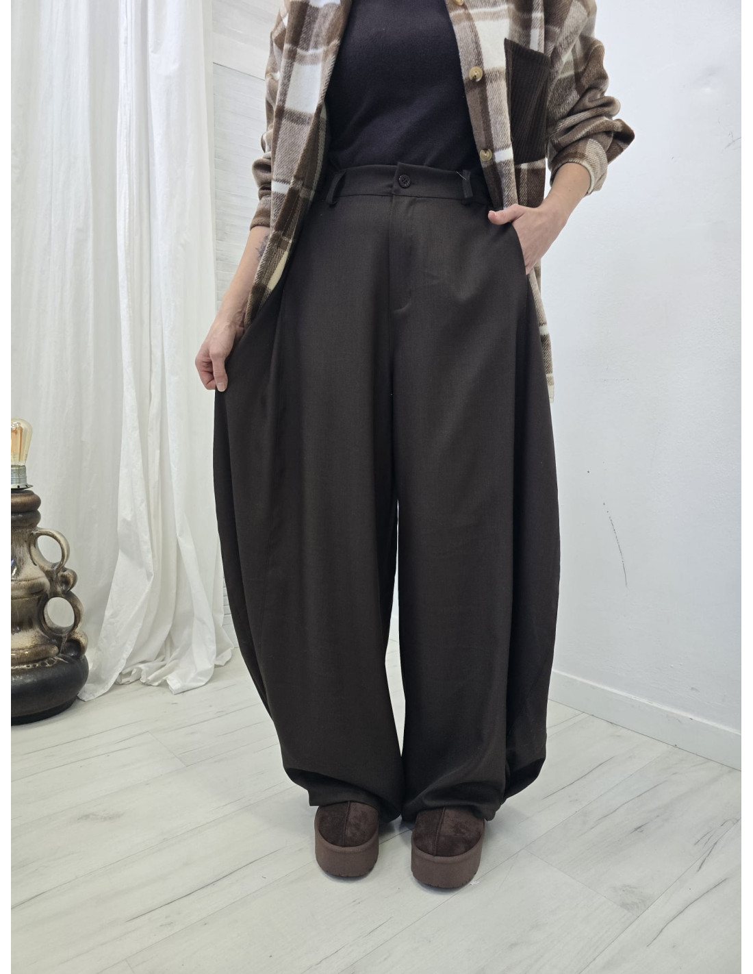 KATEGORIE Eleganckie spodnie palazzo 190115 190115 Materiał stanowi: 96% poliester, 4% elastan Produkt Włoski Zobacz