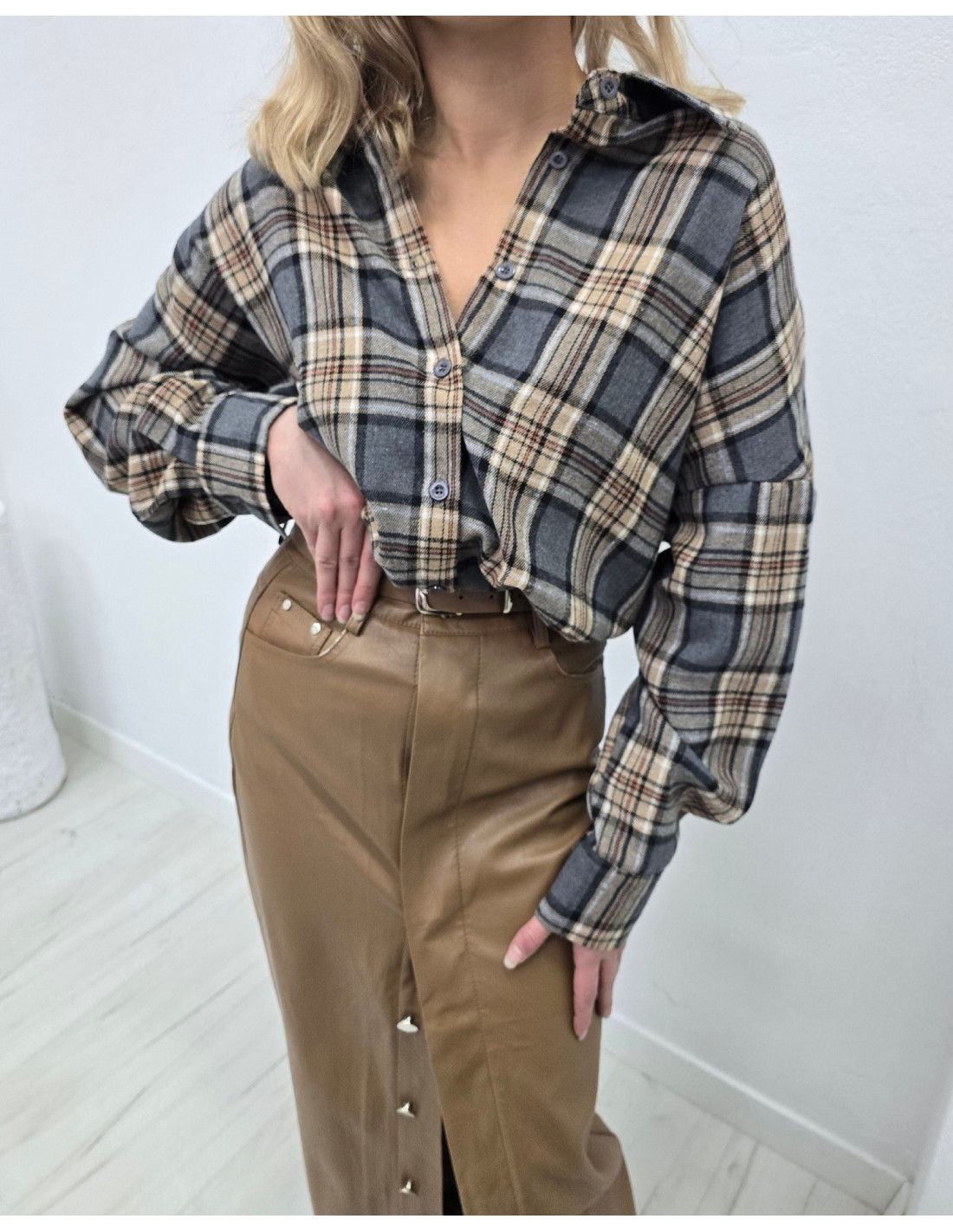 Kategorie Spodnie eko skóra P162 kremowe Mochy P162 crema Materiał stanowi: 55% PU, 45% bawełna Wysoki stan, miękka eko skóra.Pasek w zestawie Zobacz